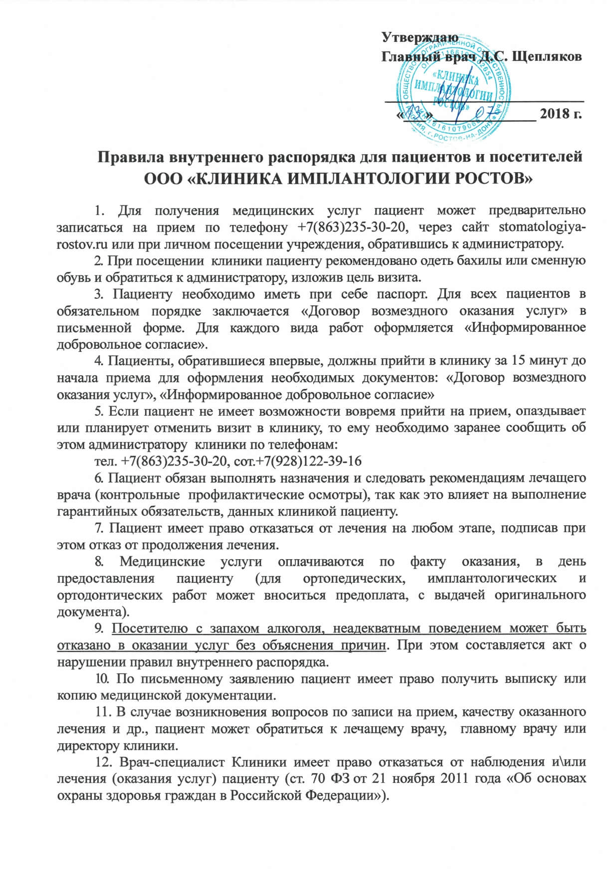 3. Пациенту необходимо иметь при себе паспорт. Для всех пациентов в обязательном порядке заключается договор возмездного оказания услуг в письменной форме. Для каждого вида работ оформляется информированное добровольное согласие.