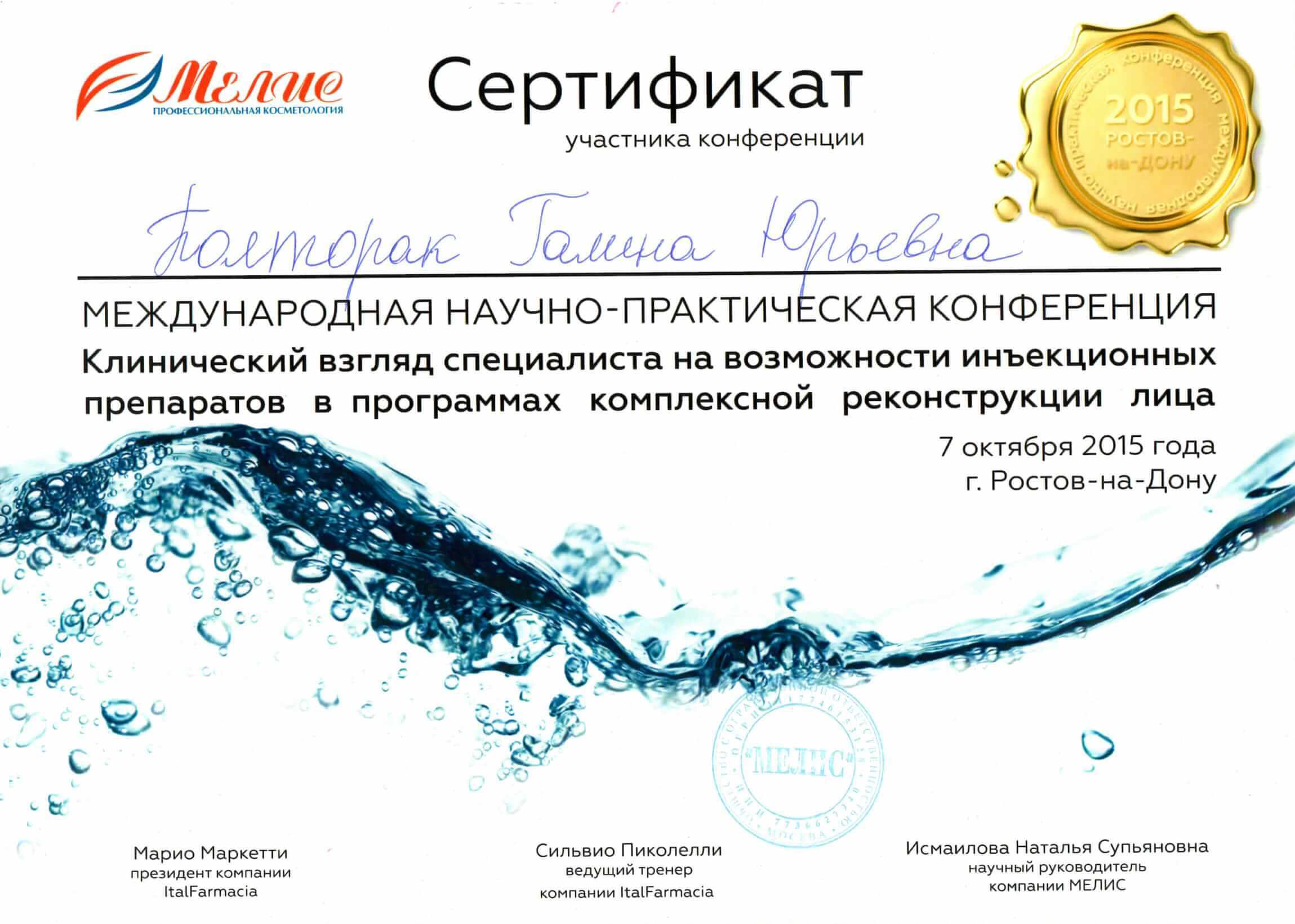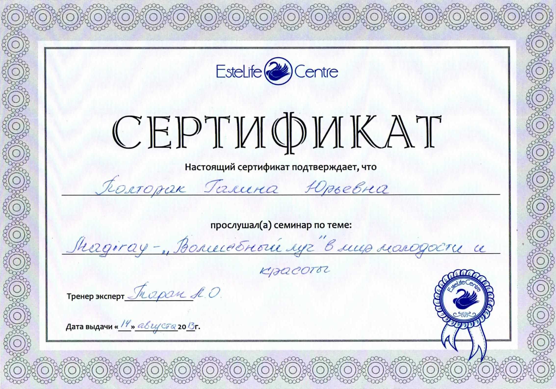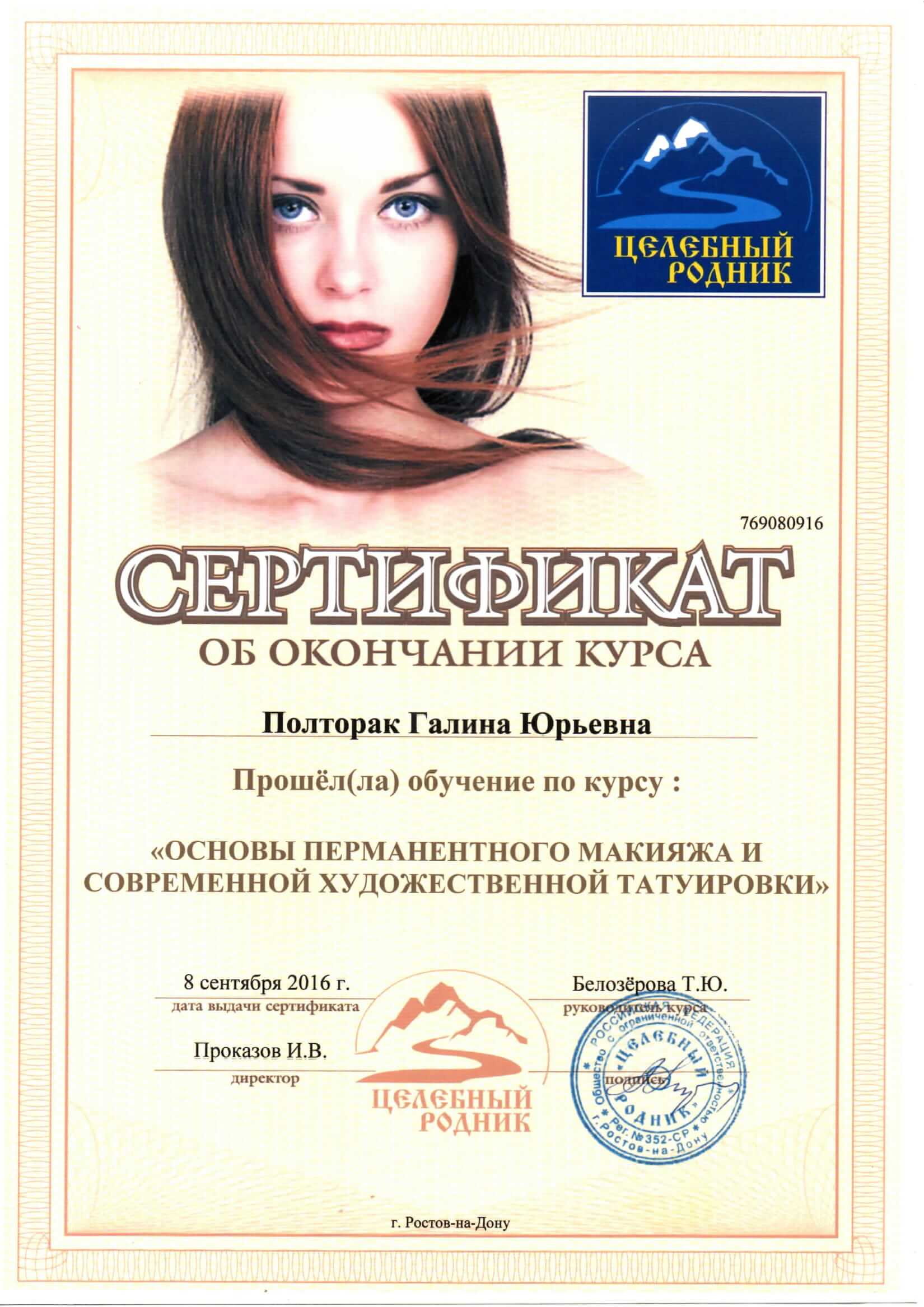 Прошла профессиональную переподготовку в ГБОУ ВПО Ростовский государственный медуниверситет Минздравсоцразвития России по косметологии от 23.06.2012г.