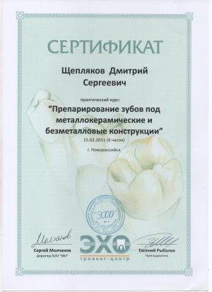 Прошёл профессиональную переподготовку в ГОК ДПО «Российская медицинская академия последипломного образования Росздрава» по ортопедической стоматологии от 18.06.2011г.
